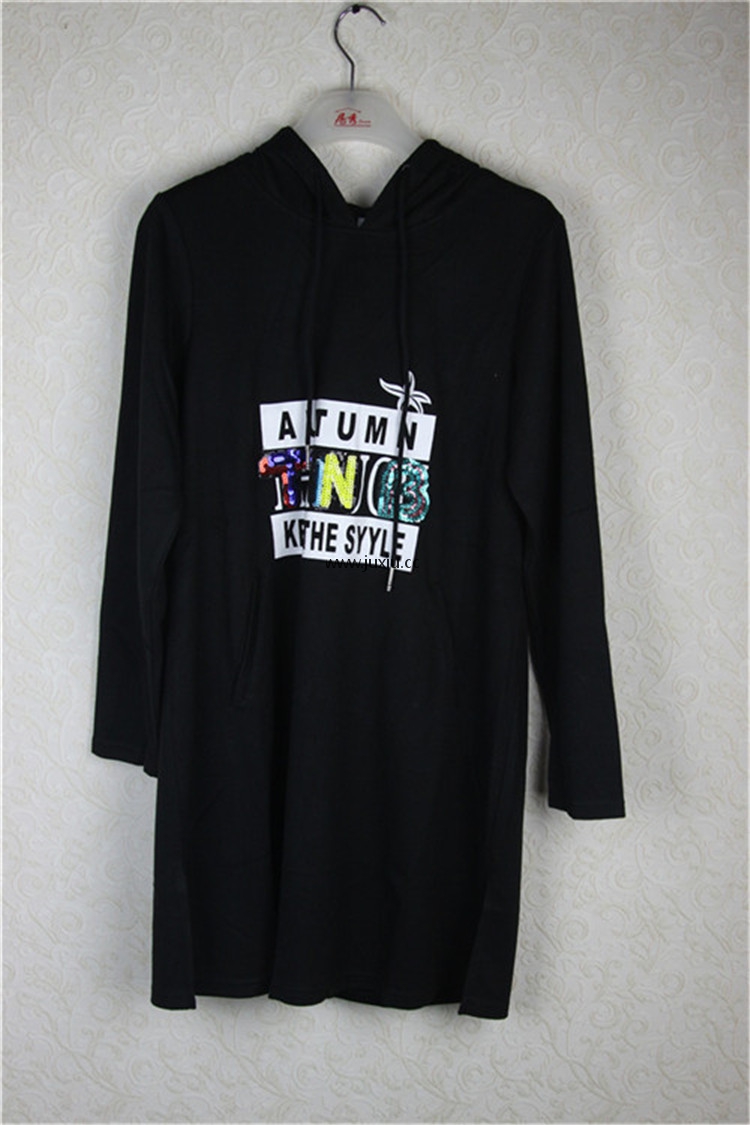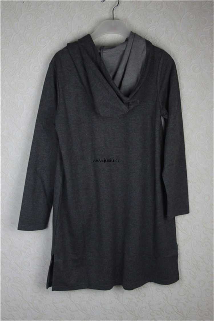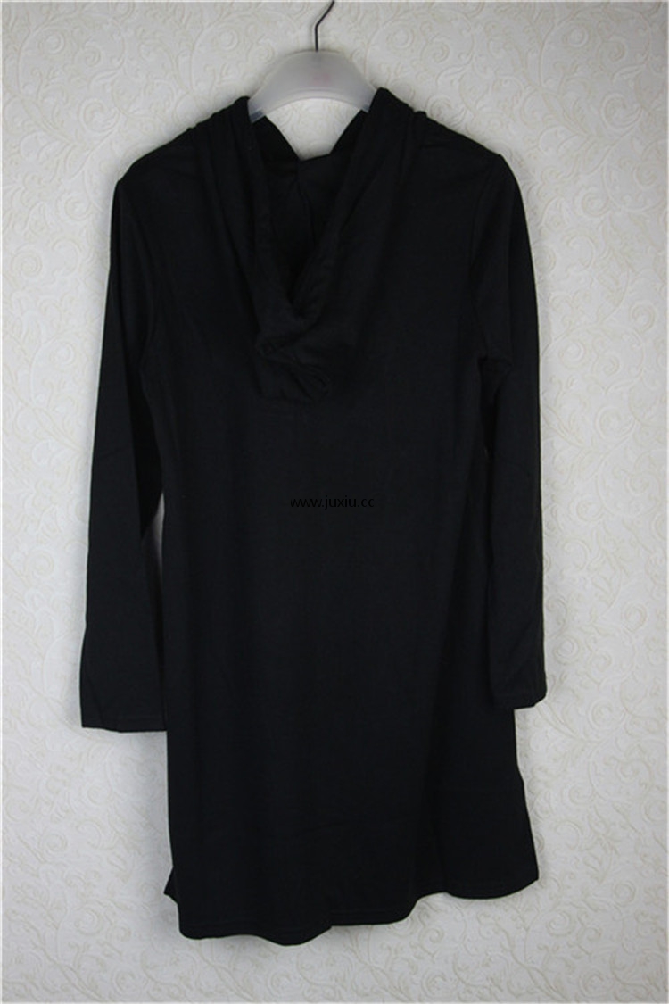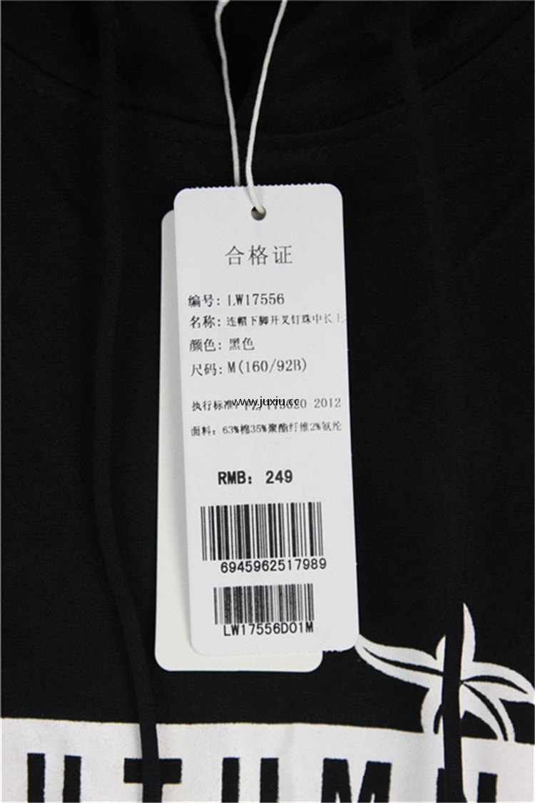 AMLW17556[爱宝]连帽下脚开叉钉珠中长上衣