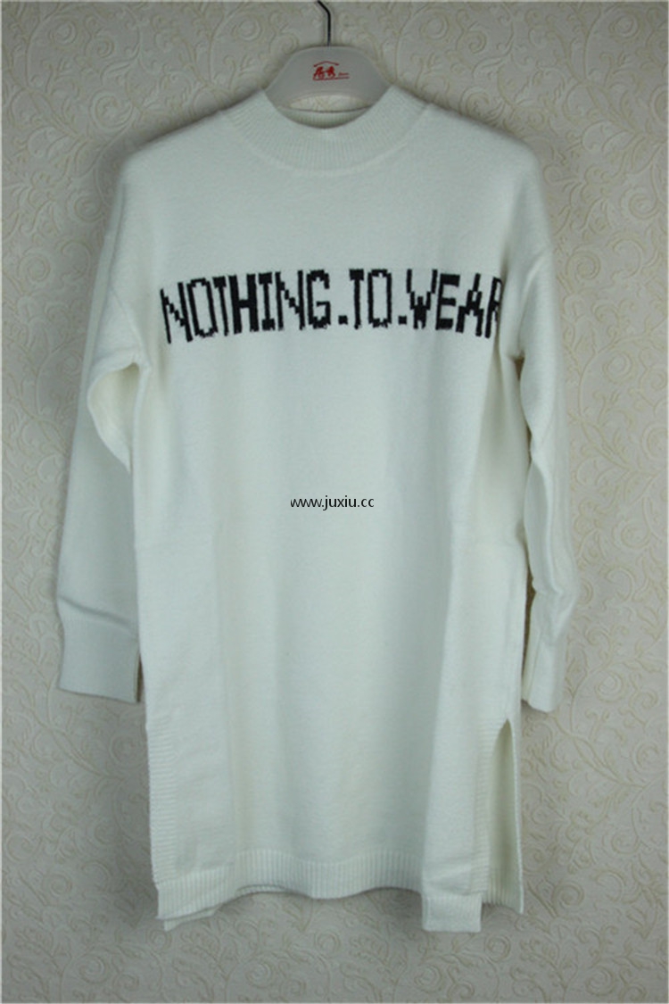 AMLW17640[爱宝]半高领织字母中长毛衣