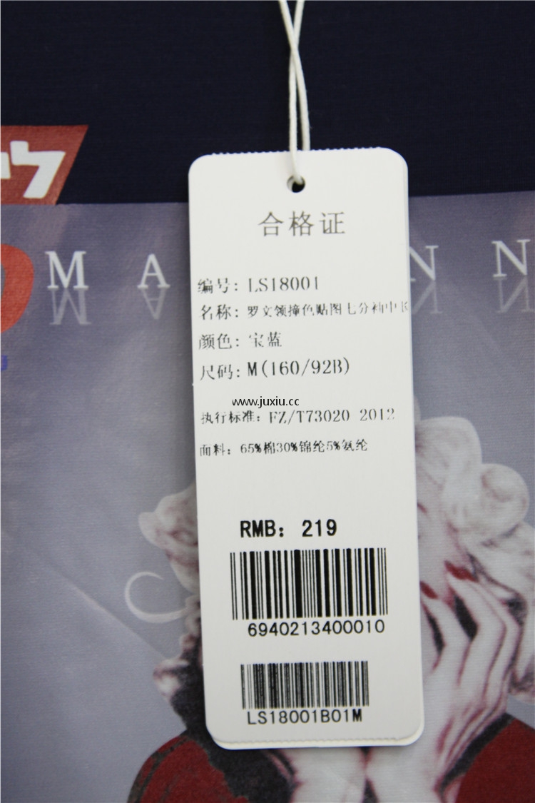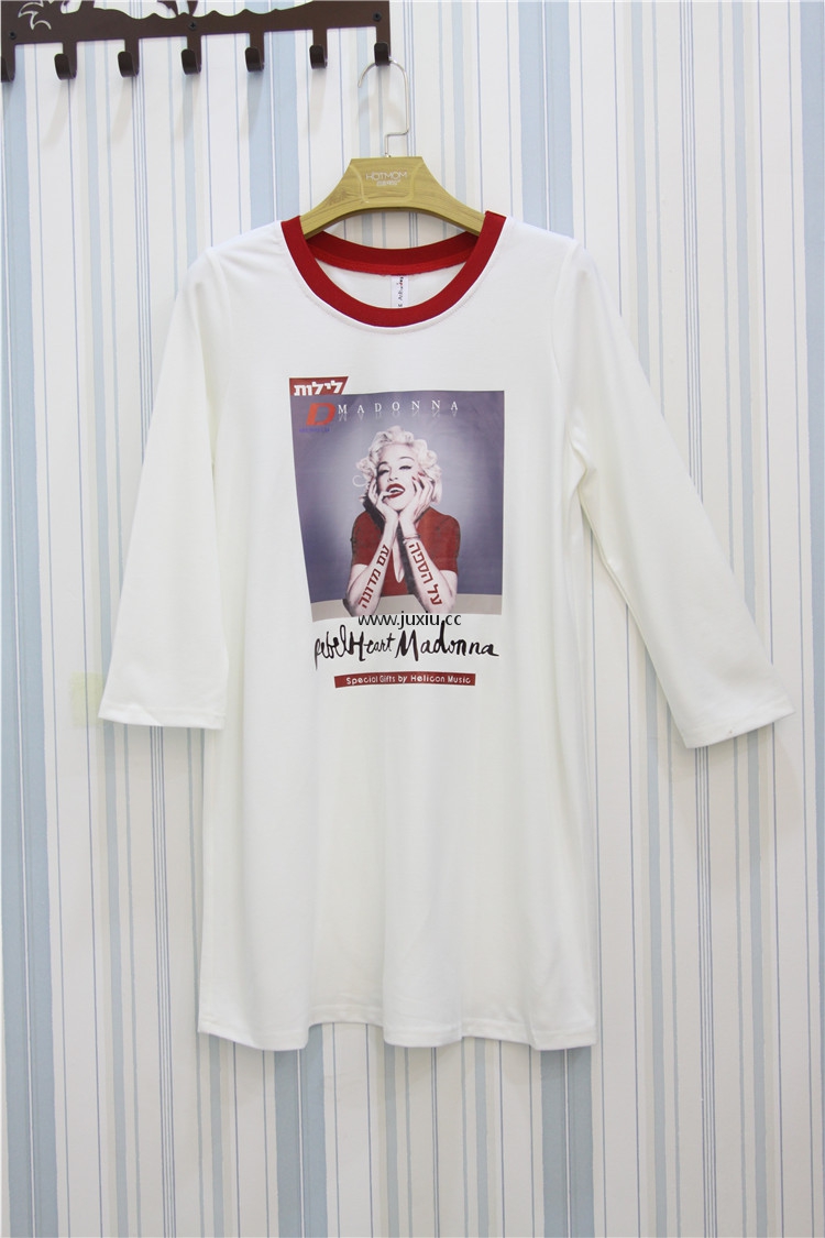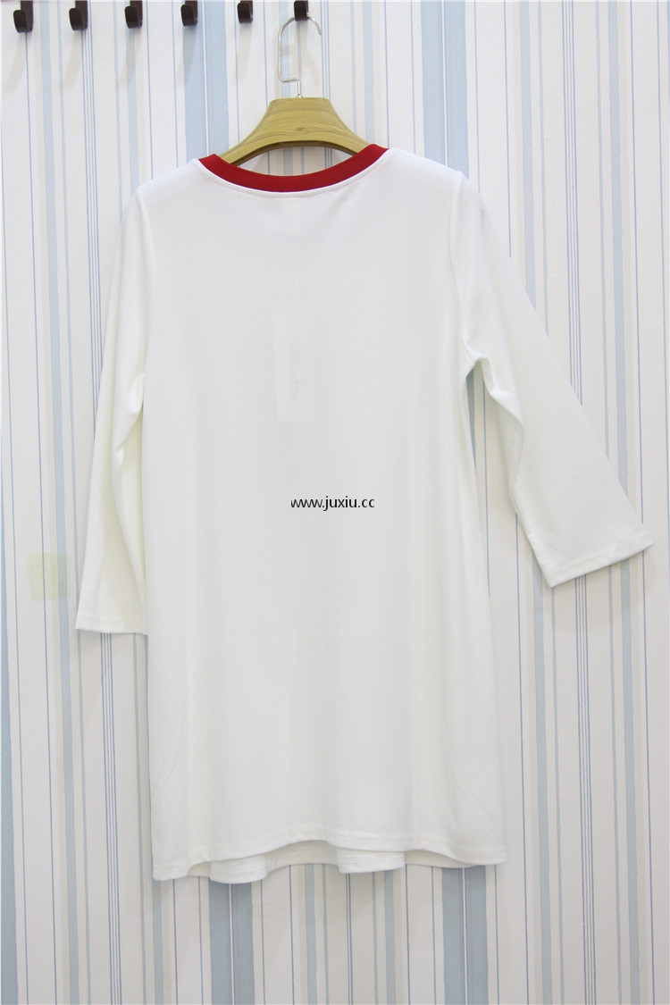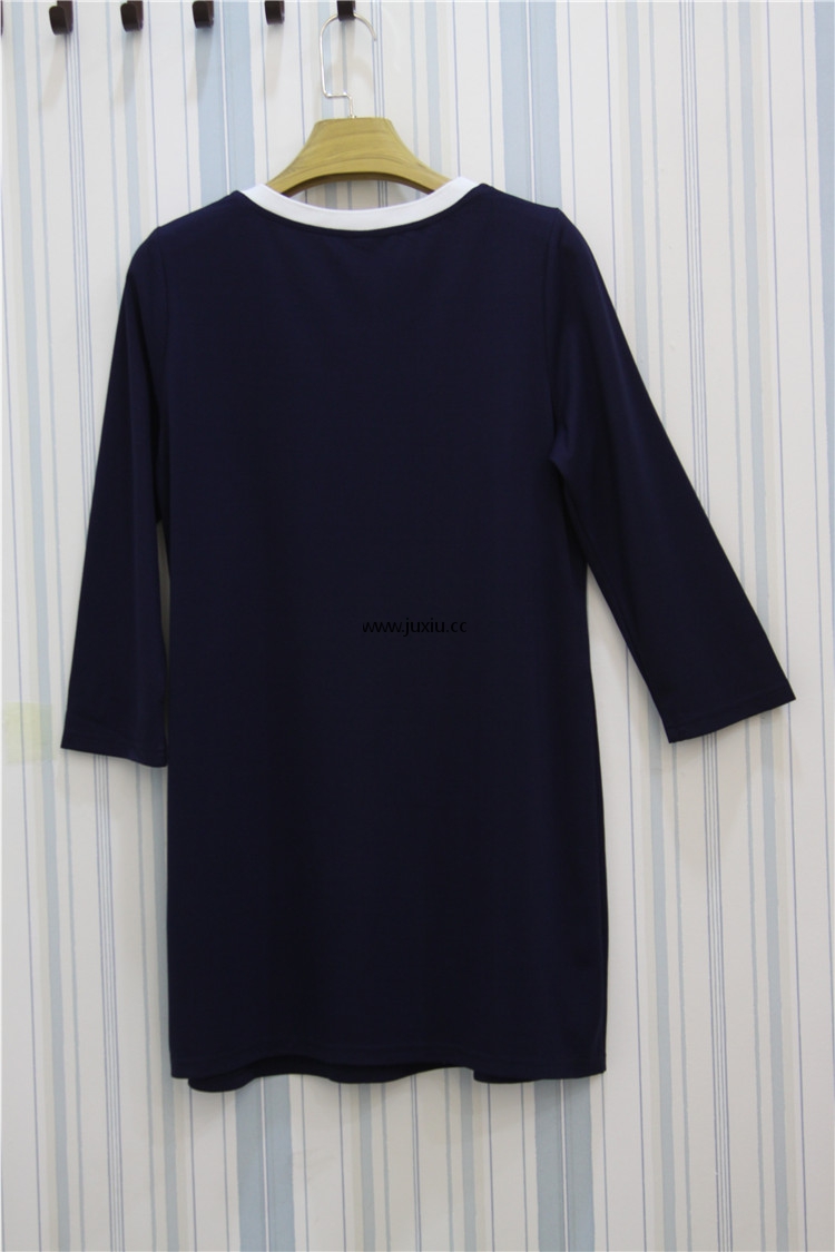 AMLS18001爱宝罗文领撞色贴图七分袖中长上衣