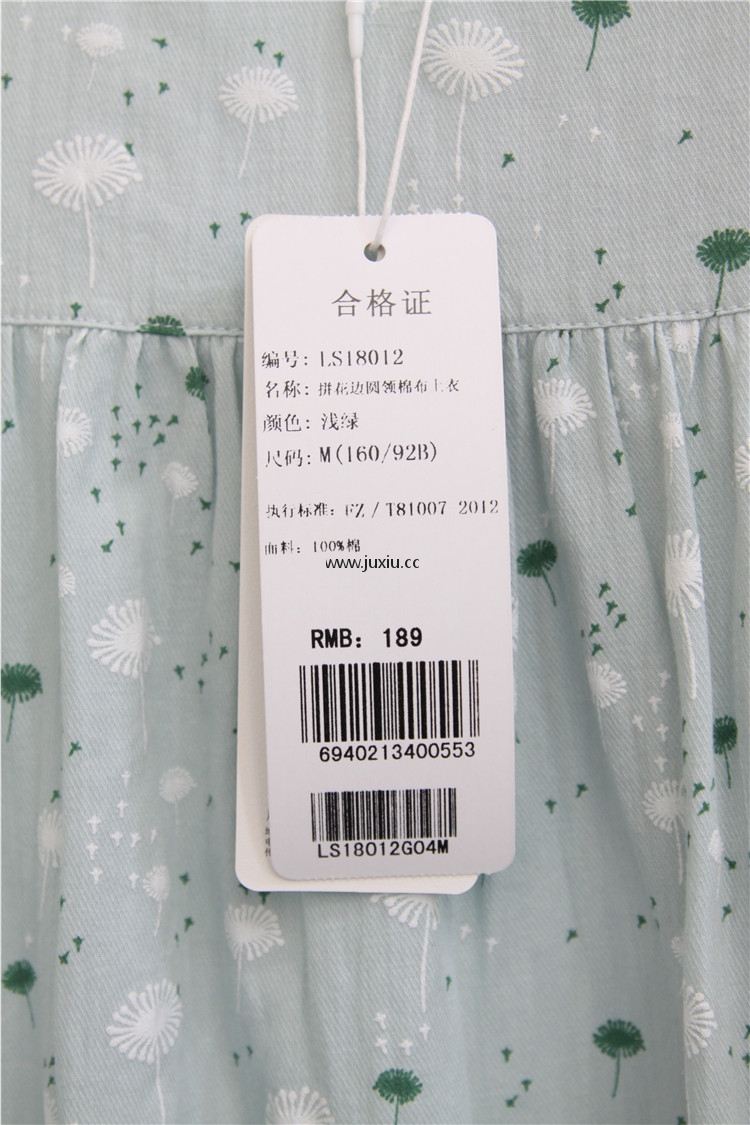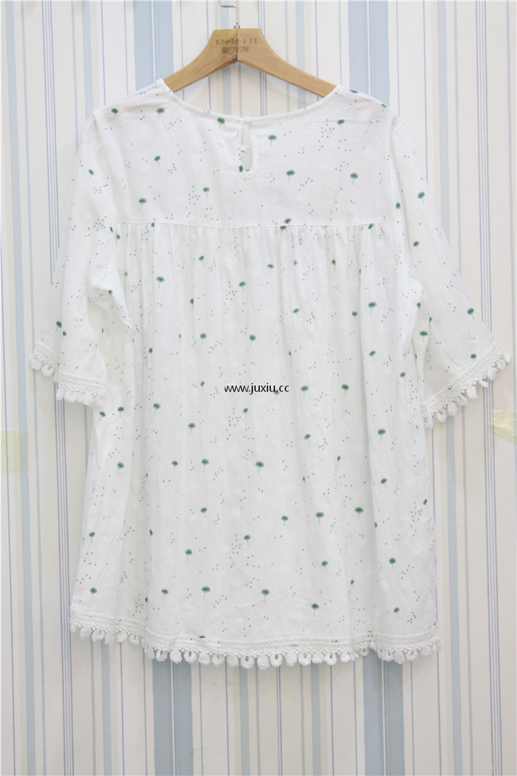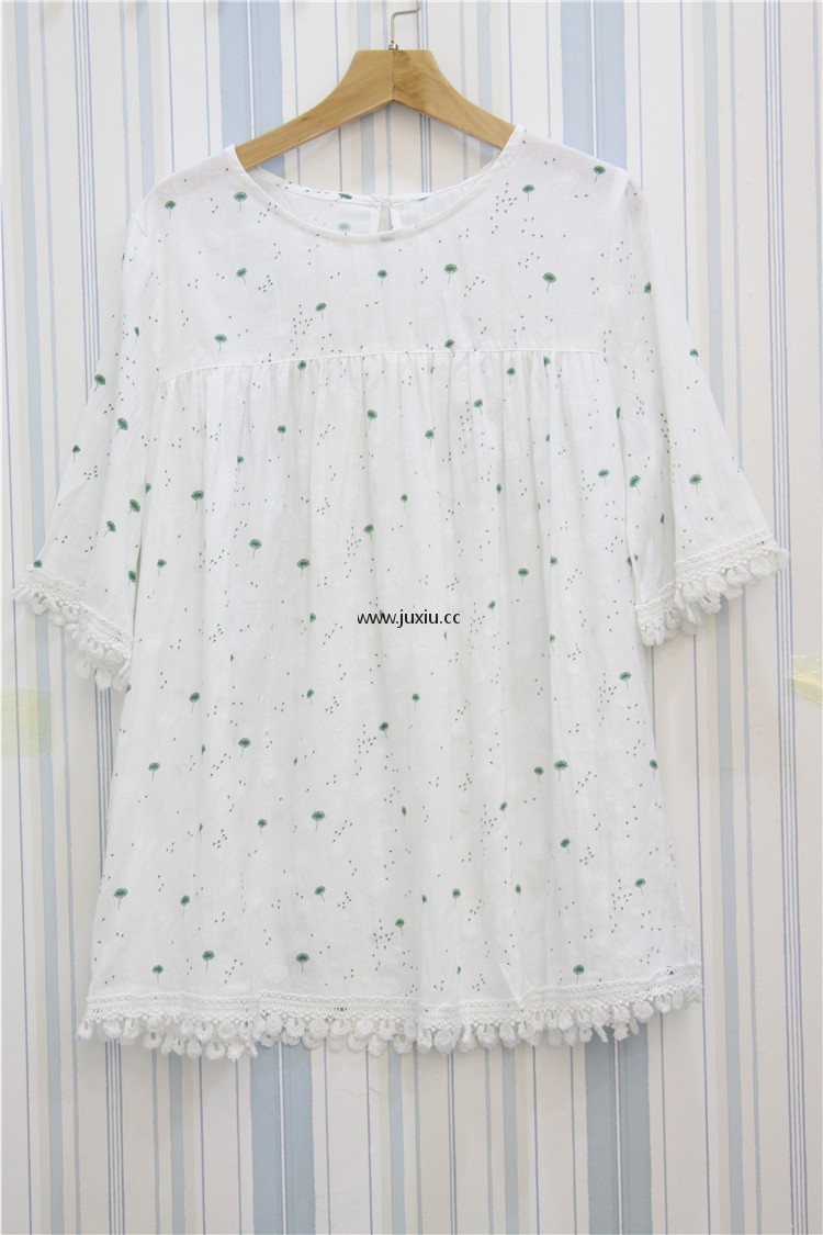 AMLS18012爱宝拼花边圆领棉布上衣