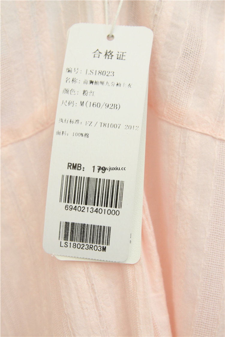 AMLS18023爱宝前胸抽绳九分袖上衣