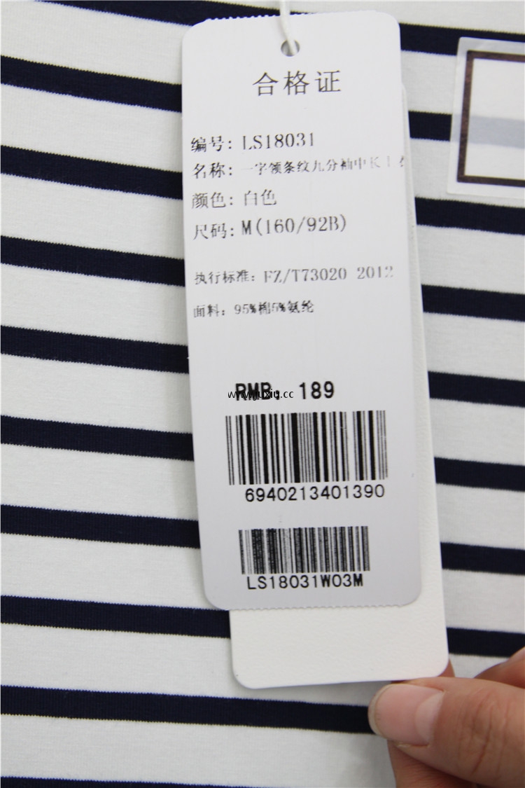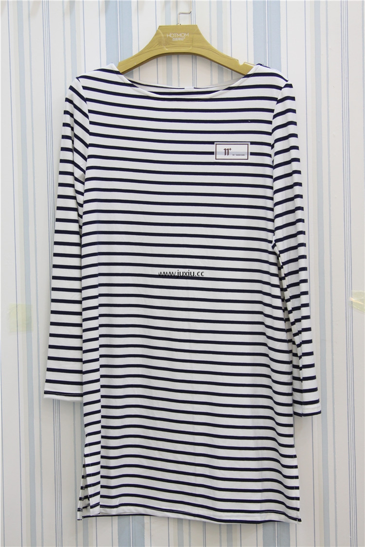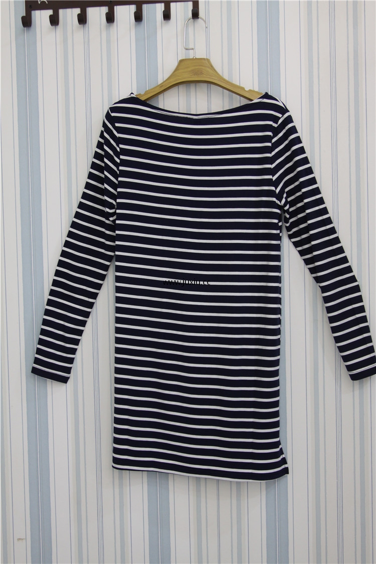 AMLS18031爱宝一字领条纹九分袖中长上衣