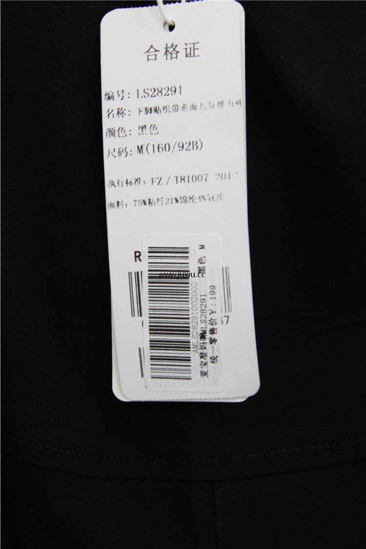 AMLS28291爱宝下脚贴织带素面九分弹力裤