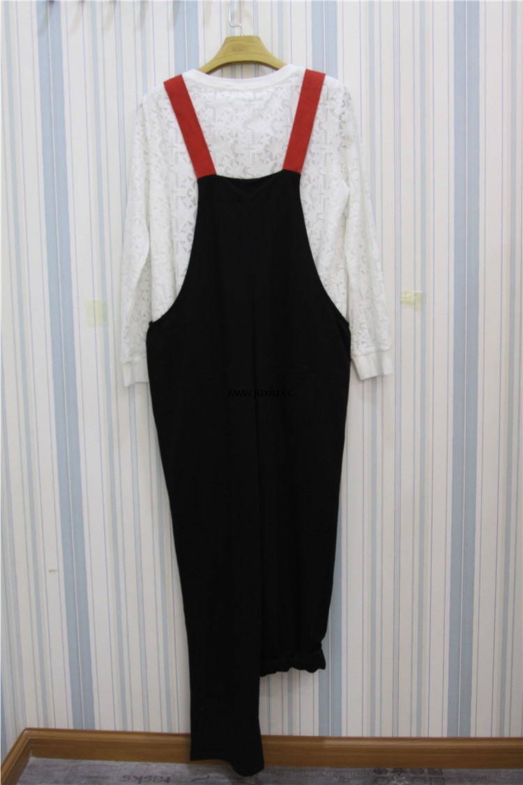 AMLS48364爱宝吊带撞色针织连体九分直筒裤