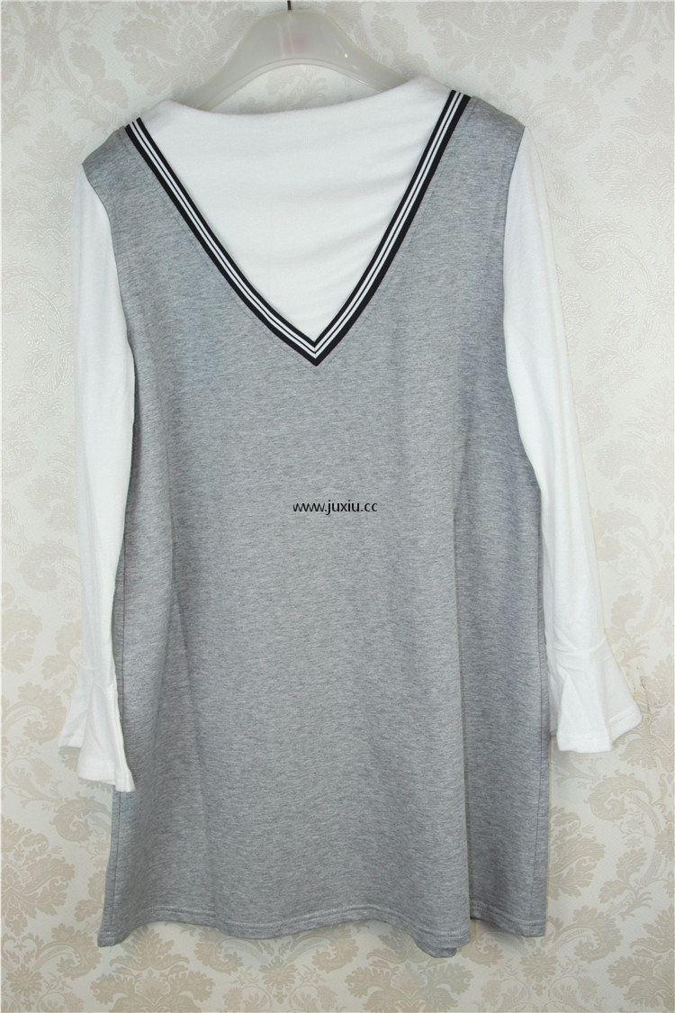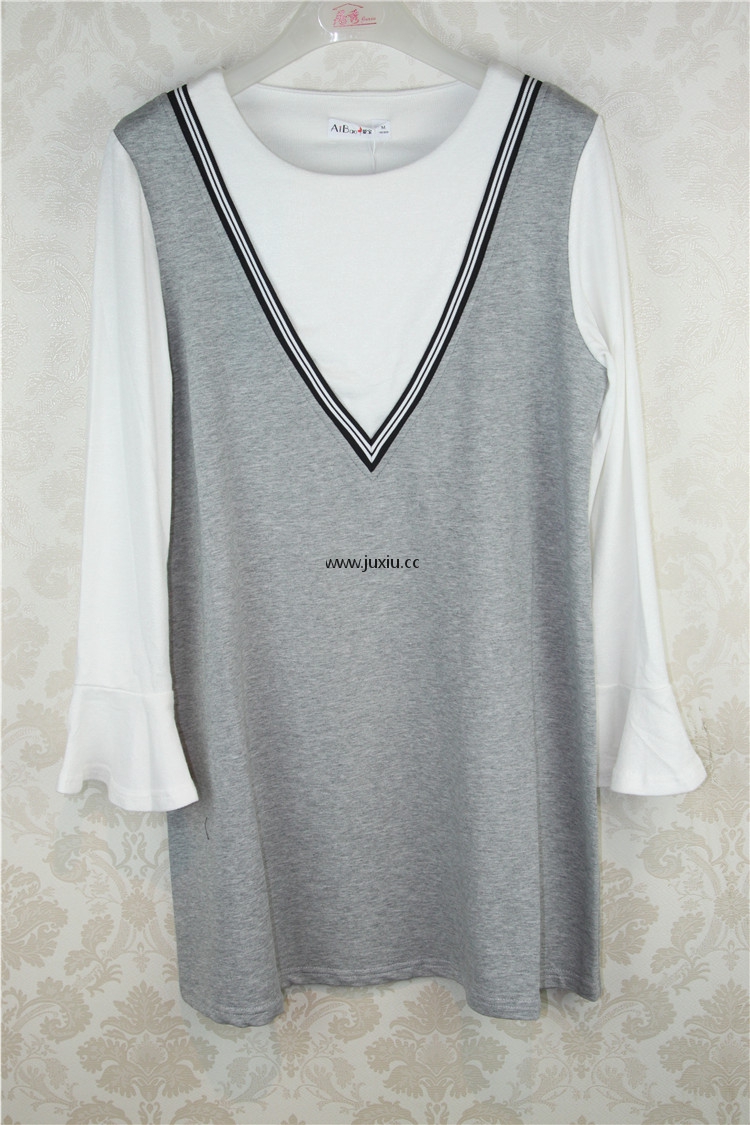 AMLW67672 [爱宝]白底背心假两件连衣裙