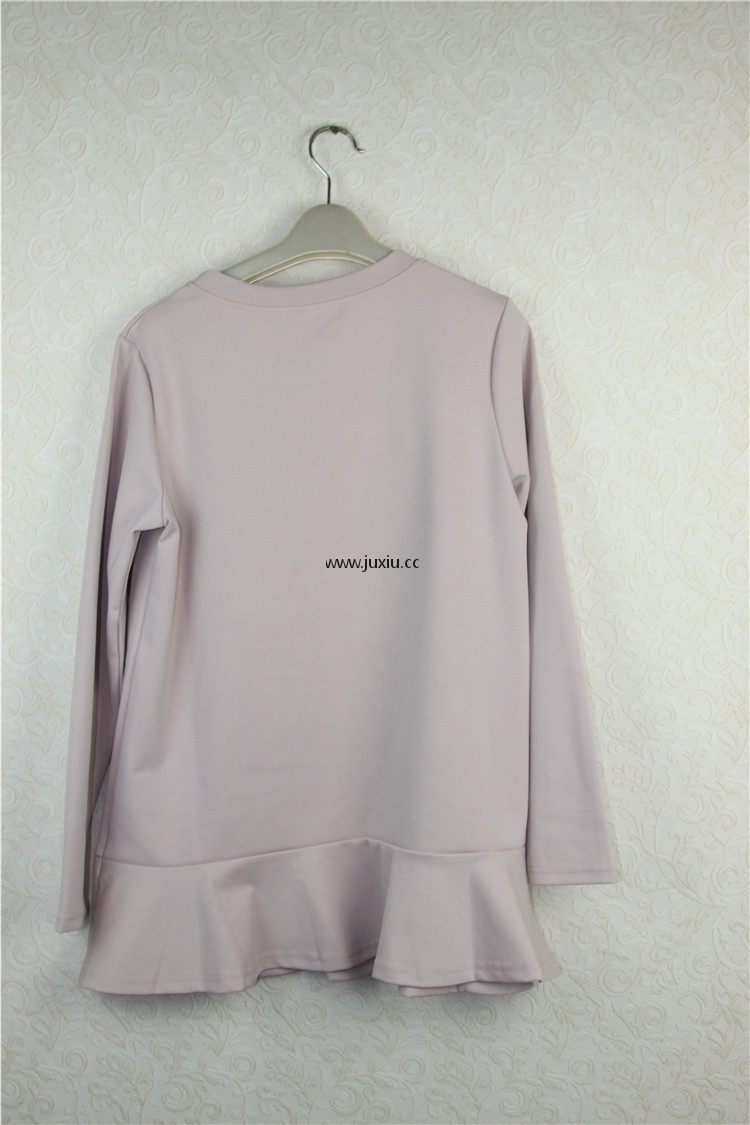 AMLW17567[爱宝]前幅贴图下摆荷叶边中长上衣