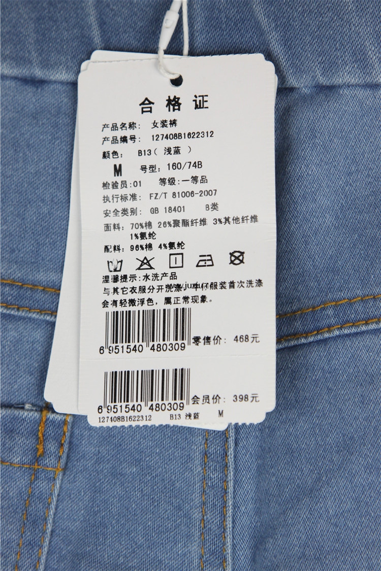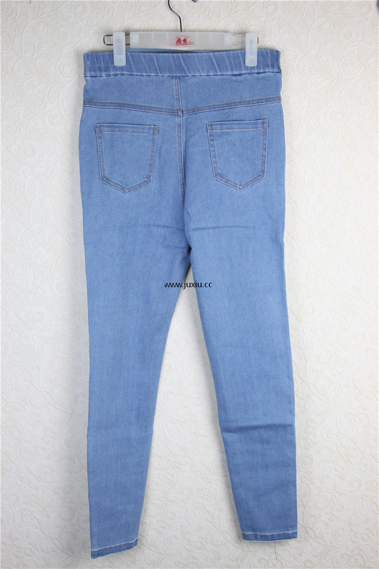 127408B1622312君心蕾丝拼贴小脚牛仔裤